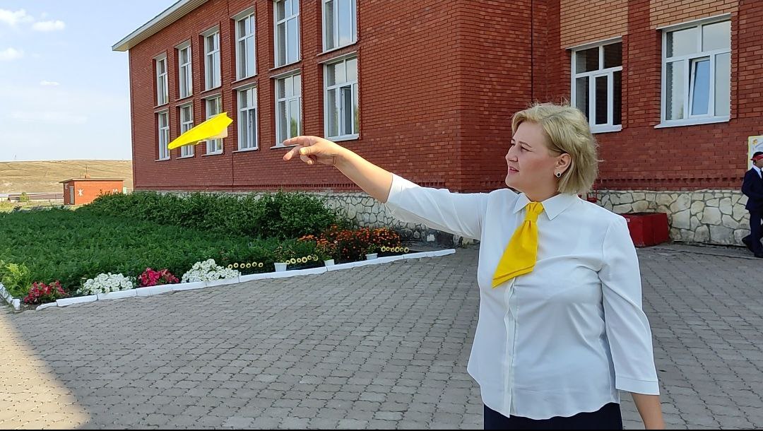 На торжественной линейке, посвященной Дню знаний, МОБУ Староакбуляковская ООШ тоже запустили традицию «Самолётик будущего».